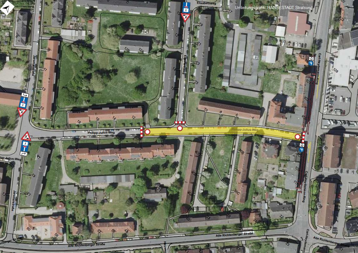 Im Anschluss wird ab dem 29. September im Philipp-Julius-Weg weitergebaut. Hierfür ist der Abschnitt zwischen den Hausnummern 1 bis 12 ab Montag kommender Woche voll gesperrt. Fußgängerinnen und Fußgänger können die Baustelle weiterhin passieren.